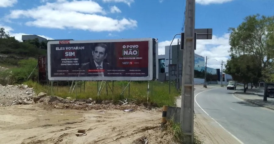 Com o rosto de Motta, o outdoor estampava o recado: "eles votaram sim para proteger políticos que cometem crimes, o povo não vai esquecer disso". Também constavam os nomes dos deputados federais Aguinaldo Ribeiro (PP), Cabo Gilberto Silva (PL), Murilo Galdino (Republicanos), Damião Feliciano (UB), Gervásio Maia (PSB), Mersinho Lucena (PP), Wellington Roberto (PL), Wilson Santiago (Republicanos) e Romero Rodrigues (Podemos).