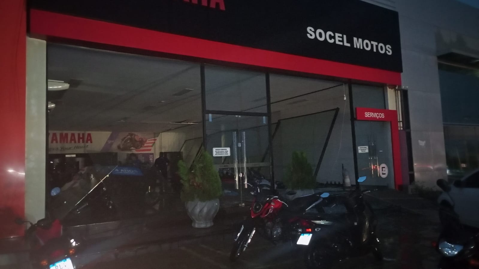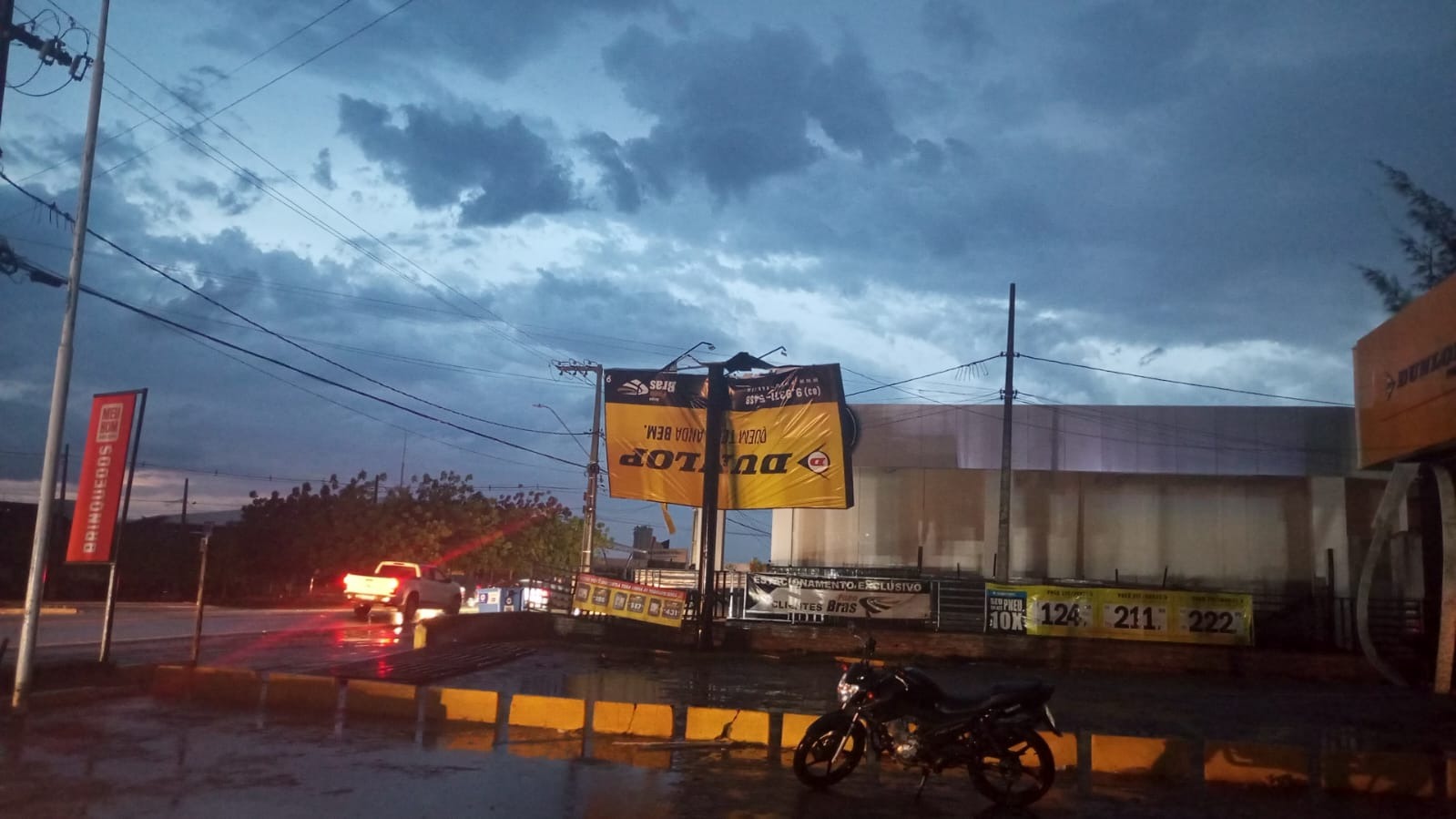 Em relação aos transtornos, o registro do teto da concessionária caído mostra que apenas parte da estrutura desabou sobre os carros. Os postes quebrados são de um material semelhante ao ferro e aparecem dobrados ao meio.