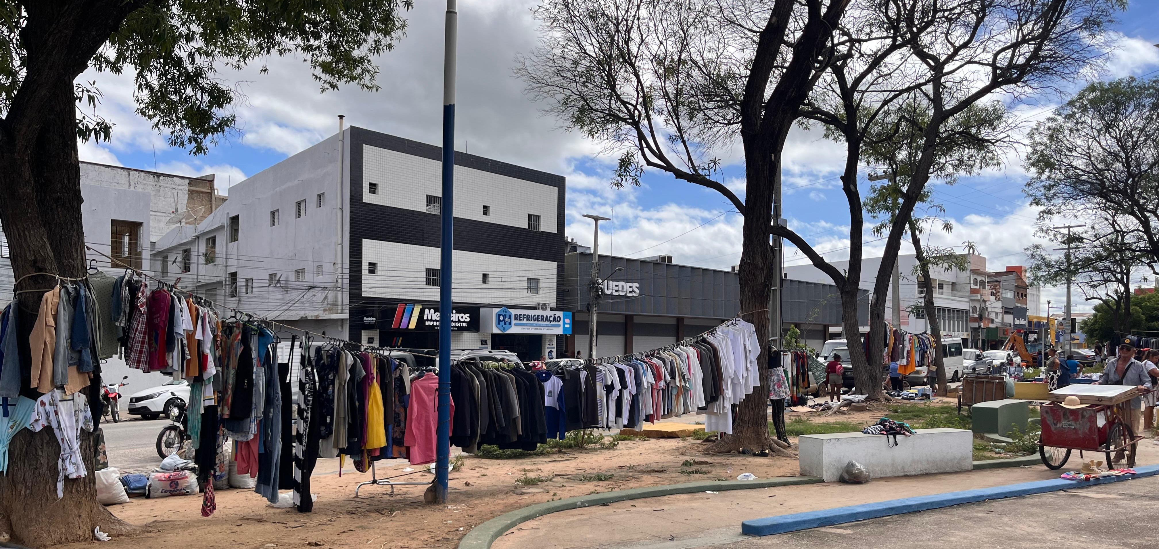 Quem passou pela Praça Cícero Supino na manhã deste sábado (25), dia de feira livre, deve ter tomado um susto ao perceber que entre as roupas penduradas em varal em cima do logradouro tinha uma vestimenta da farda doada a alunos da Rede Municipal de Ensino sendo vendida sem o menor