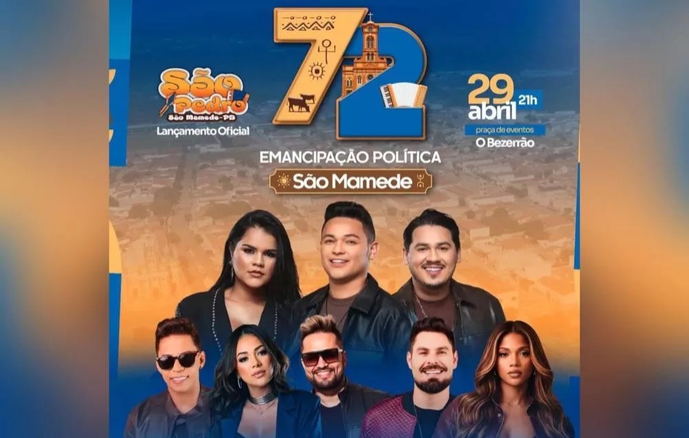 Além das comemorações pelo aniversário da cidade, a noite também será marcada por um dos momentos mais aguardados pelo público: o lançamento oficial do São Pedro de São Mamede 2026. Durante o evento, a gestão municipal fará o anúncio da programação e revelará a grade de atrações da tradicional festa, que movimenta a região e atrai turistas todos os anos.