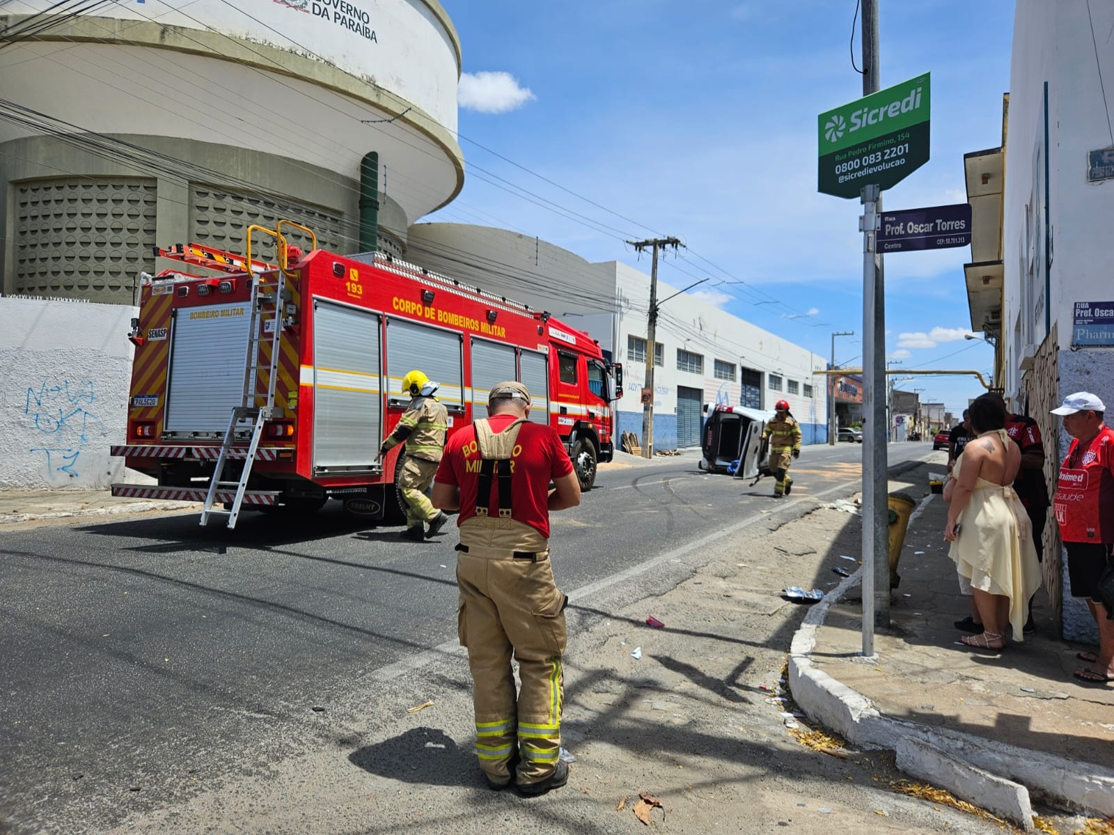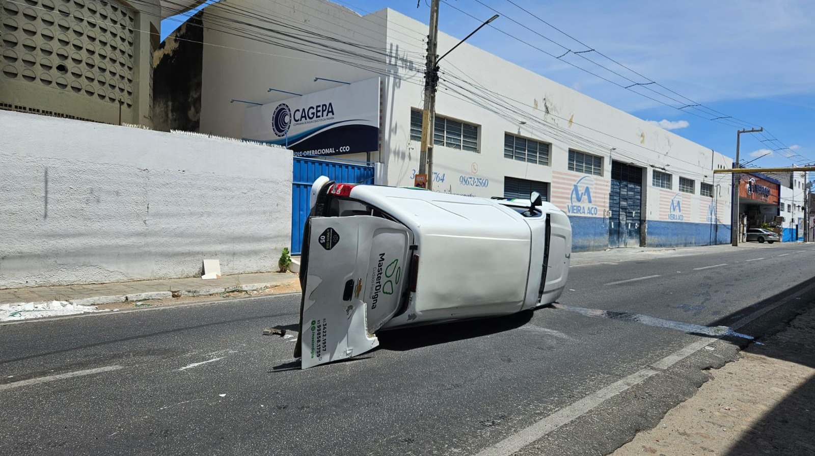 [VÍDEOS] Carro de funerária capota na Rua do Prado, em Patos, ao se envolver em acidente com outro veículo