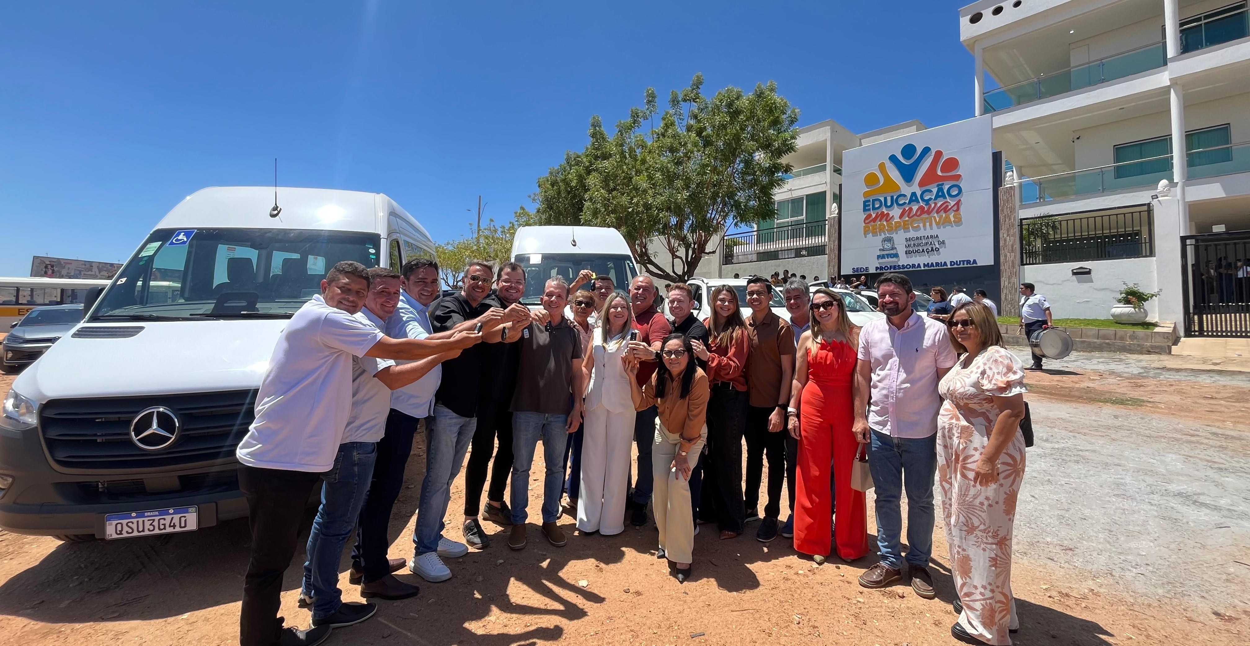 A Prefeitura de Patos, por meio da Secretaria Municipal de Educação, realizou a entrega de cinco novos veículos que irão reforçar a frota da Rede Municipal de Educação. O investimento, feito com recursos próprios do município, chega a marca de R$ 1,4 milhão e representa mais um avanço na infraestrutura educacional da cidade.