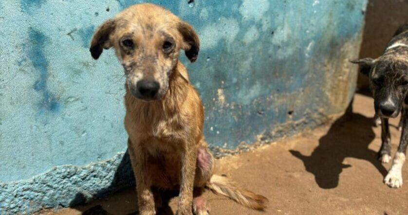 No canil, foram encontrados 27 cães em condições precárias, muitos deles doentes e em estado de caquexia (magreza extrema).