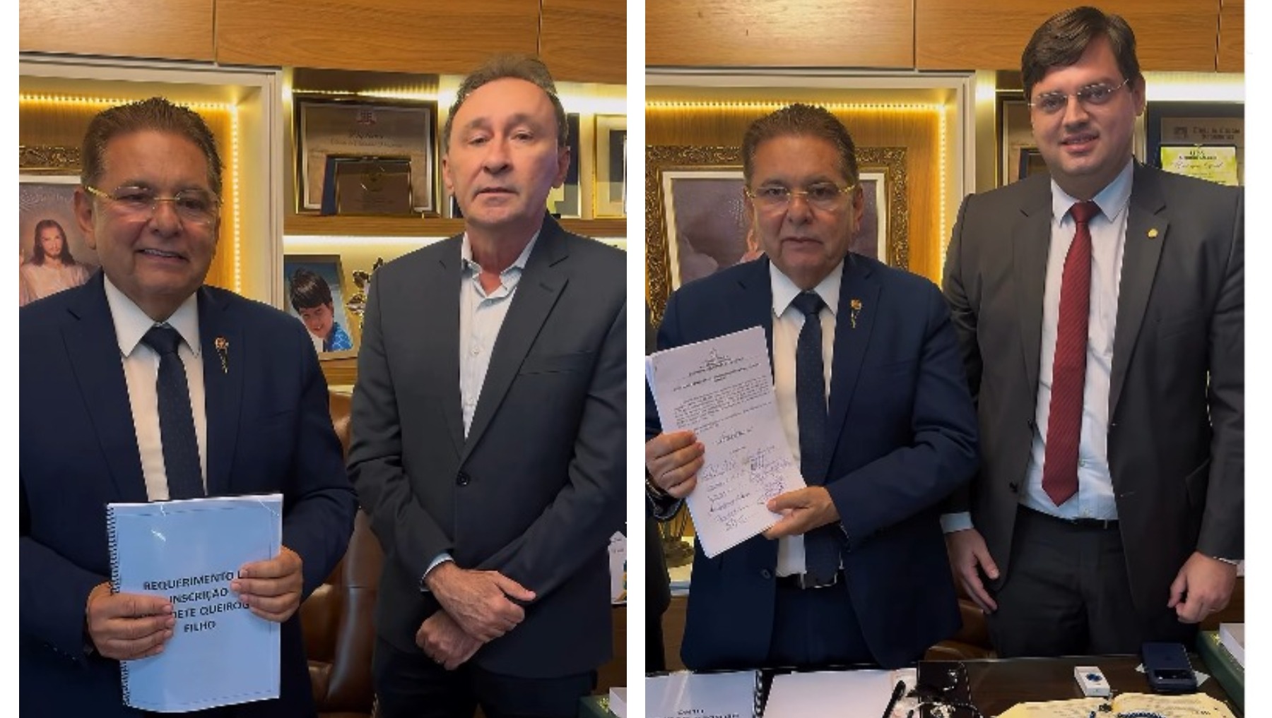 O secretário de Estado da Infraestrutura e dos Recursos Hídricos, Deusdete Queiroga (PSB) e o deputado estadual Taciano Diniz (União Brasil) formalizaram, na tarde desta quarta-feira (4), as inscrições à vaga de conselheiro do Tribunal de Contas do Estado da Paraíba (TCE-PB) com entrega dos documentos e da ficha de candidatura ao presidente da Assembleia Legislativa da Paraíba (ALPB), Adriano Galdino, acompanhado do presidente da Comissão de Constituição e Justiça (CCJ), deputado estadual João Gonçalves (PSB).