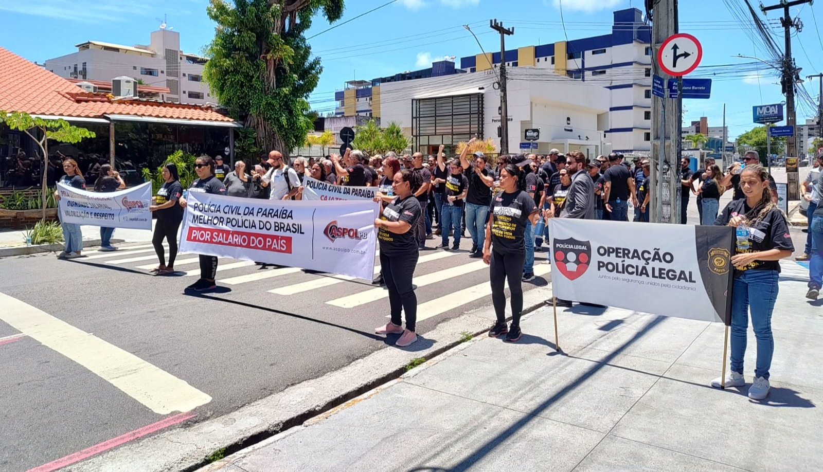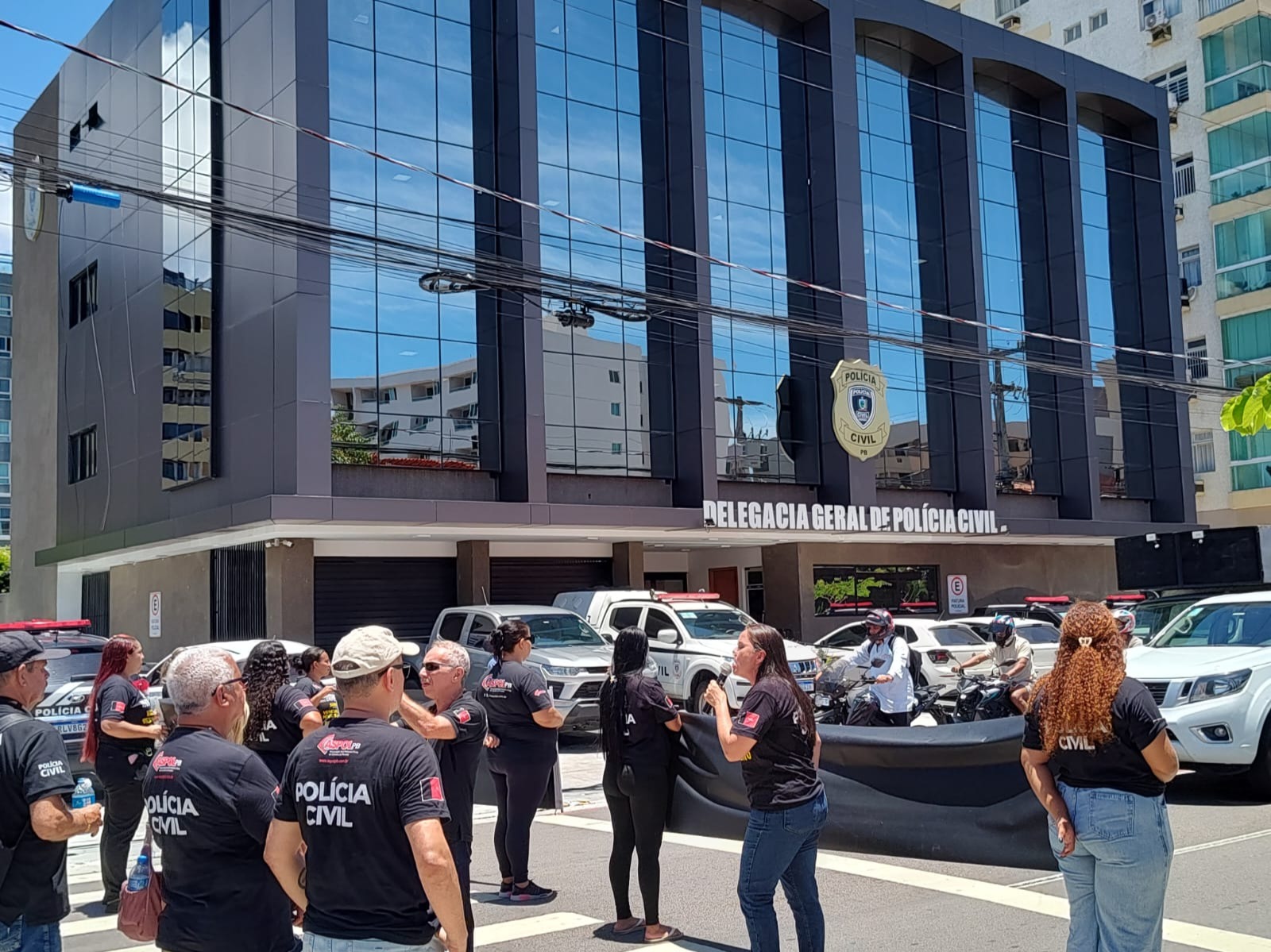 O protesto acontece em frente à Delegacia Geral da Polícia Civil da Paraíba, na Avenida Edson Ramalho, em João Pessoa. Os policiais estão parando o trânsito da região, e com faixas e palavras de ordem pedem por melhores condições de trabalho.