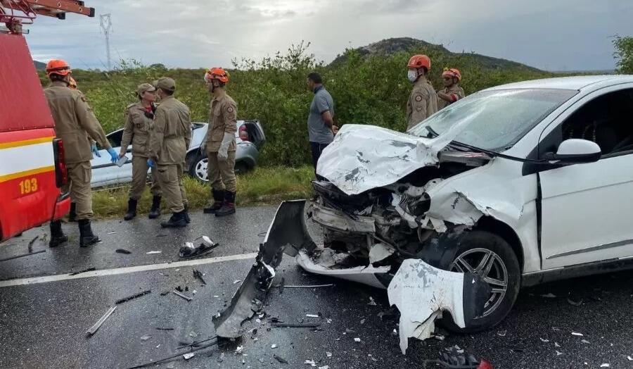 Cinco pessoas ficam feridas na BR-230 em Patos após dois carros colidirem frontalmente