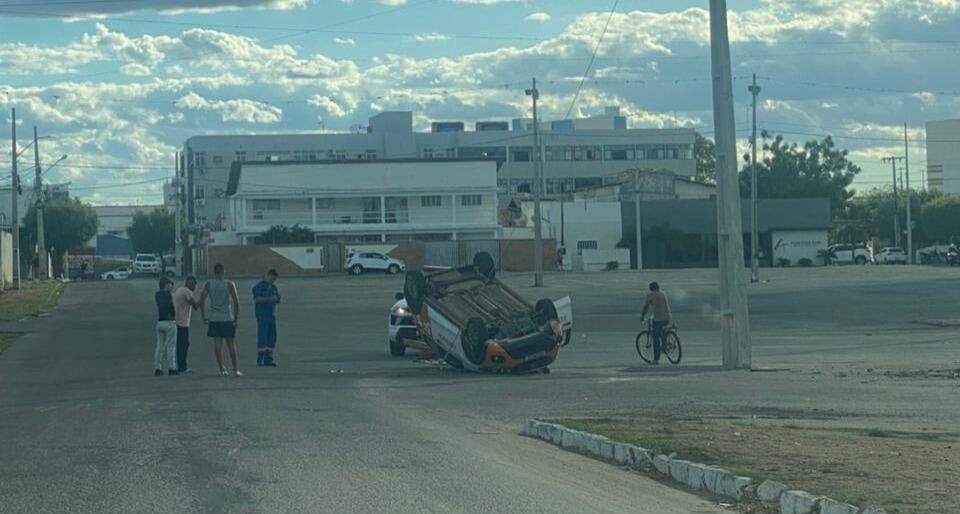 Um acidente inusitado ocorreu na tarde desta segunda-feira (21) no Terreiro do Forró em Patos-PB. Um veículo Fiat Mobi, de cor branca, pertencente a uma empresa de telecomunicações que trafegava no sentido Rua Godofredo Cunha Medeiros em direção à Ponte do São Sebastião, capotou após colidir com cabo de aço de sustentação de um poste.