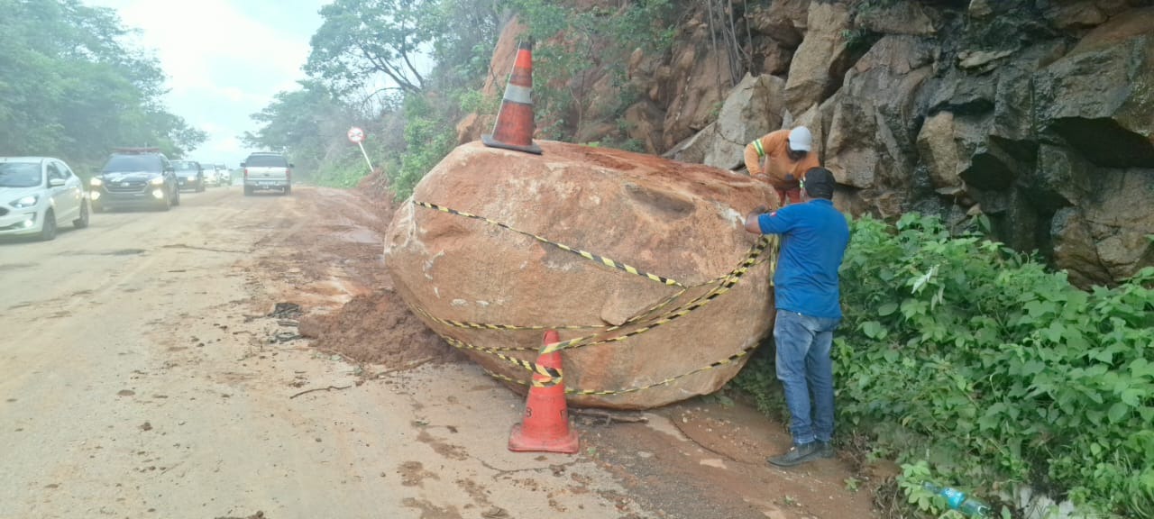 As pedras haviam se desprendido em decorrência das recentes chuvas e ficaram às margens da rodovia, exigindo uma força-tarefa para garantir a segurança dos motoristas. O trabalho foi executado ao longo de três dias, com o uso de maquinário pesado e guindaste, devido ao grande porte de uma das rochas.
