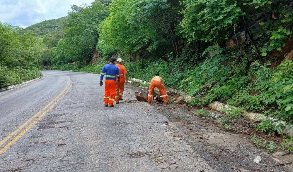 As fortes chuvas registradas nos últimos dias provocaram a queda de pedras em trechos da PB-262, na Serra do Teixeira, no Sertão paraibano, exigindo atenção dos motoristas que utilizam a rodovia.