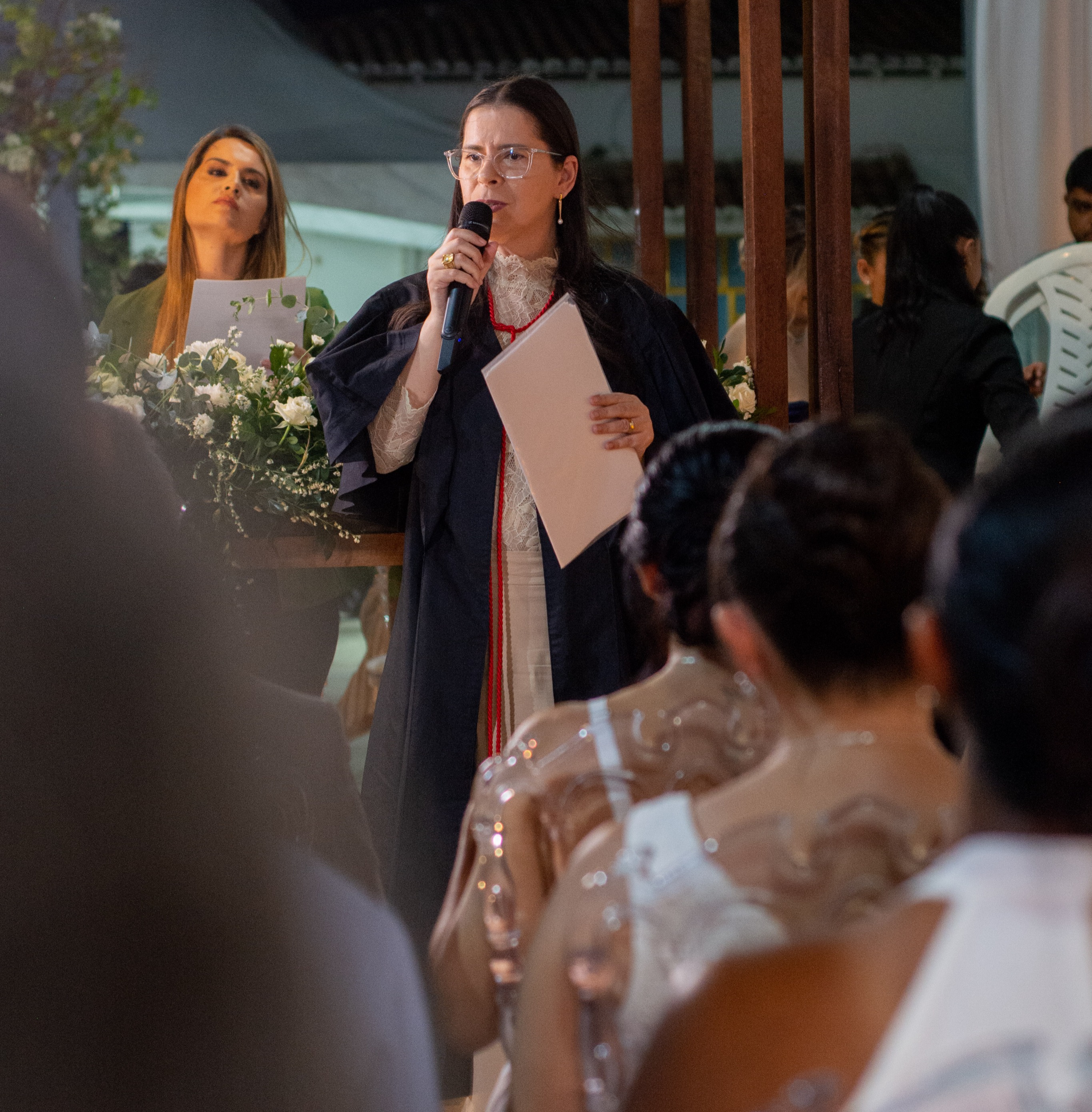 A cerimônia foi celebrada pela juíza Dra. Joscileide Lira, que conduziu o ato com sensibilidade e compromisso institucional. Também prestigiou o evento a Dra. Isabela, reafirmando a importância da ação para a garantia de direitos e cidadania. Em um momento especial de espiritualidade, o pastor Alécio Bruno realizou uma oração com os casais, pedindo bênçãos para essa nova etapa em suas vidas.