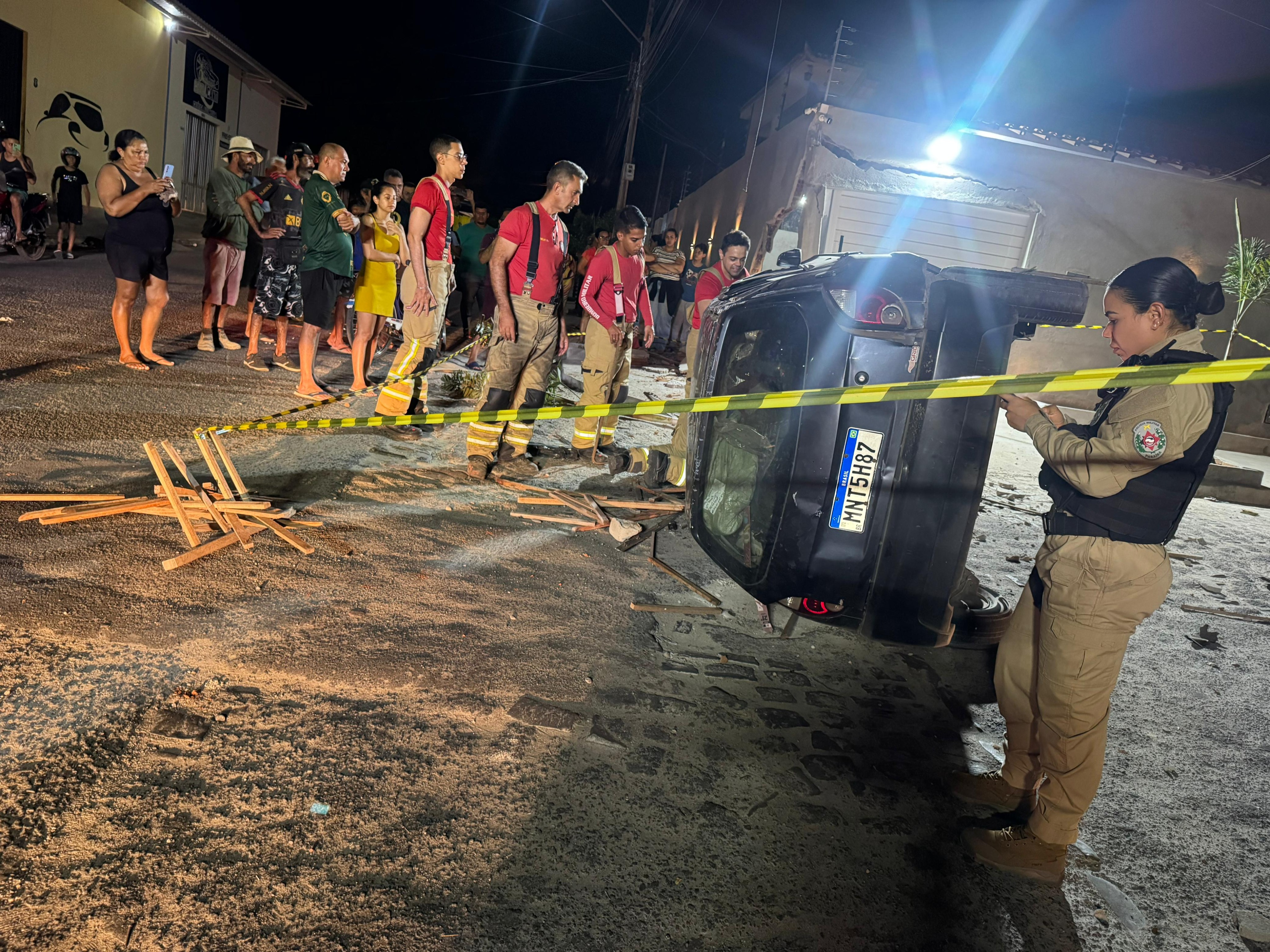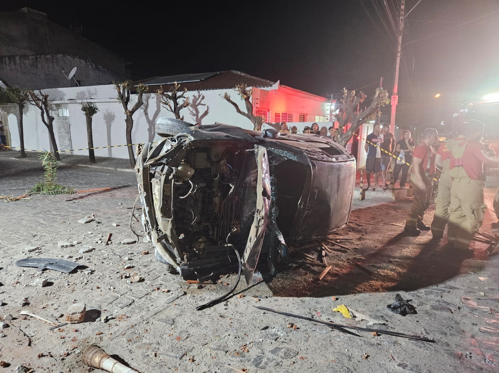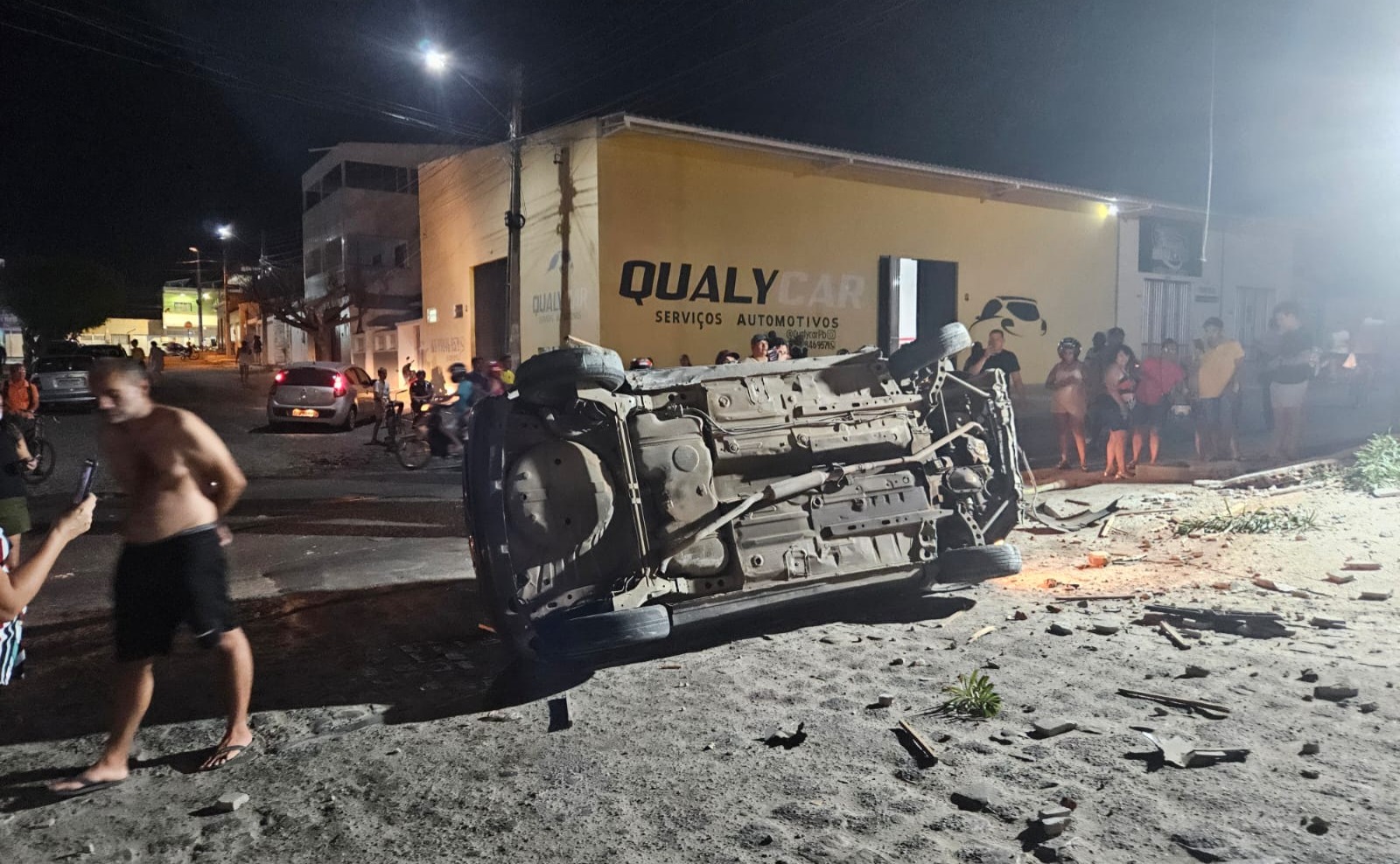 [VÍDEOS] Carro derruba muro de casa e capota em acidente cinematográfico em Patos; motorista fugiu do local