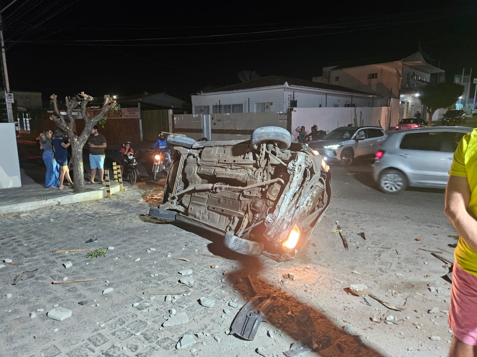 Um veículo Chevrolet, modelo Celta, cor preta, de placas MNT 5H87, capotou na Rua José Genuíno, no bairro Liberdade em Patos-PB na noite desta sexta-feira (19). O sinistro ocorreu às 18h12 quando o motorista descia a ladeira da rua e acabou provocando um acidente cinematográfico.