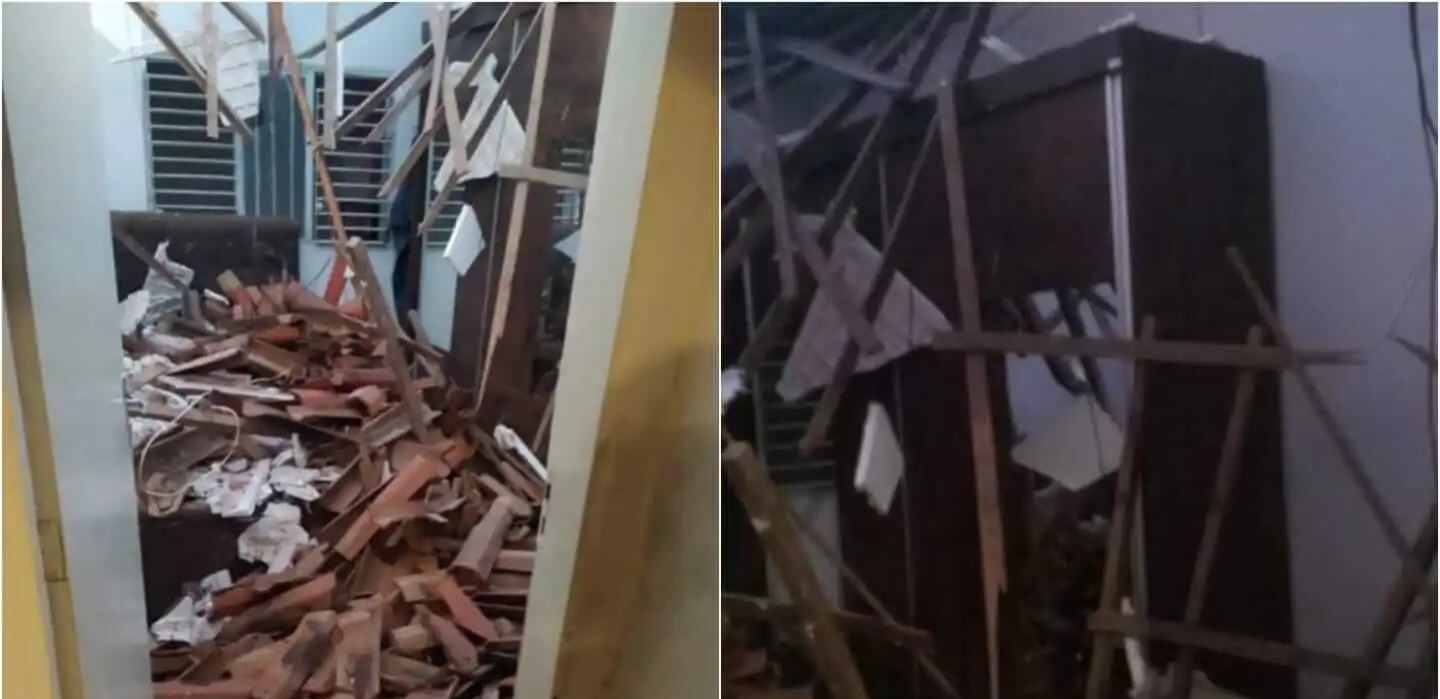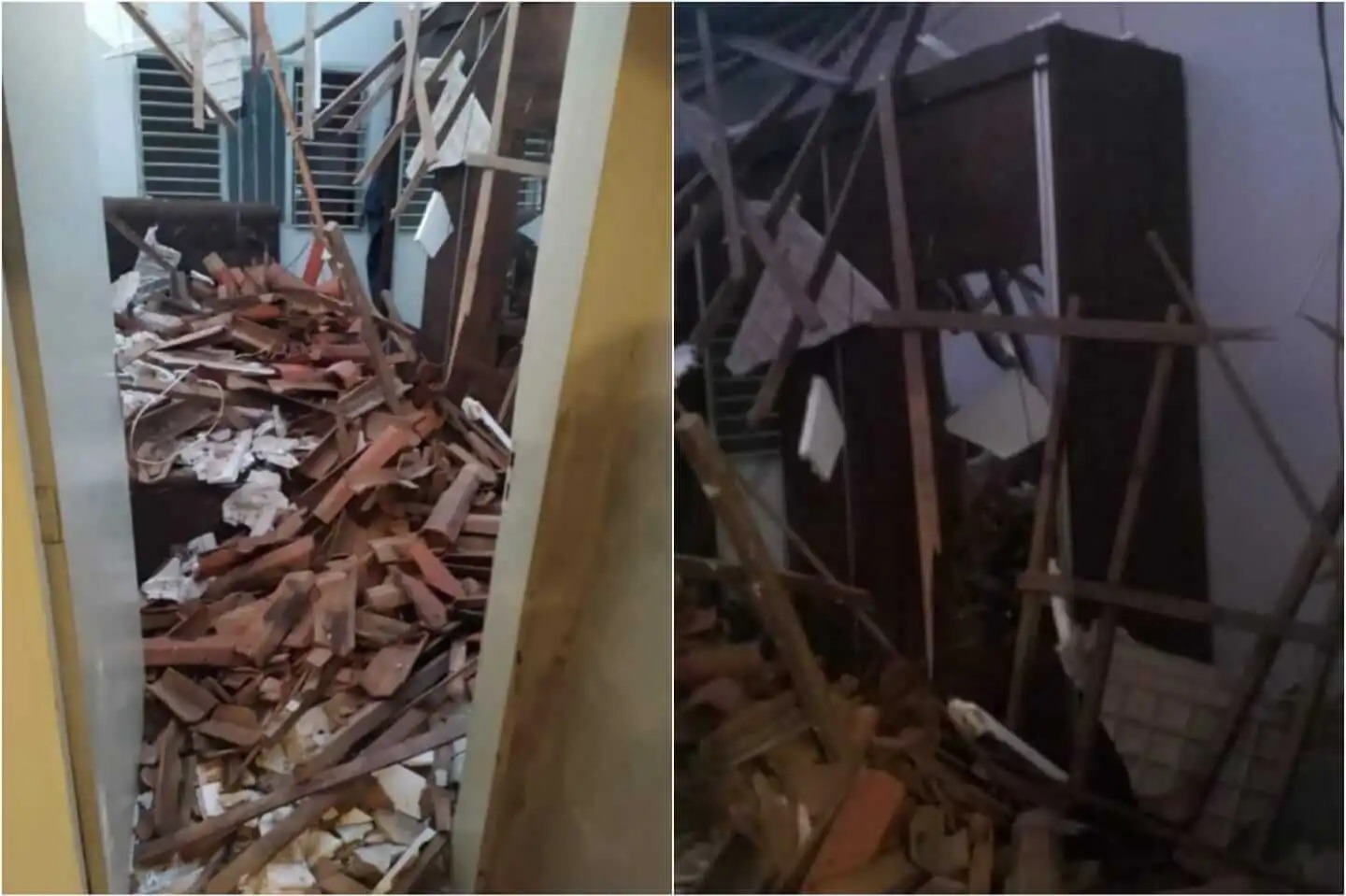 A parte do telhado que fica sobre o quarto acabou caindo sobre eles, uma mulher de 20 anos e o seu marido de 25 anos. Ambos tiveram escoriações, mas o homem apresentou também um sangramento na cabeça.