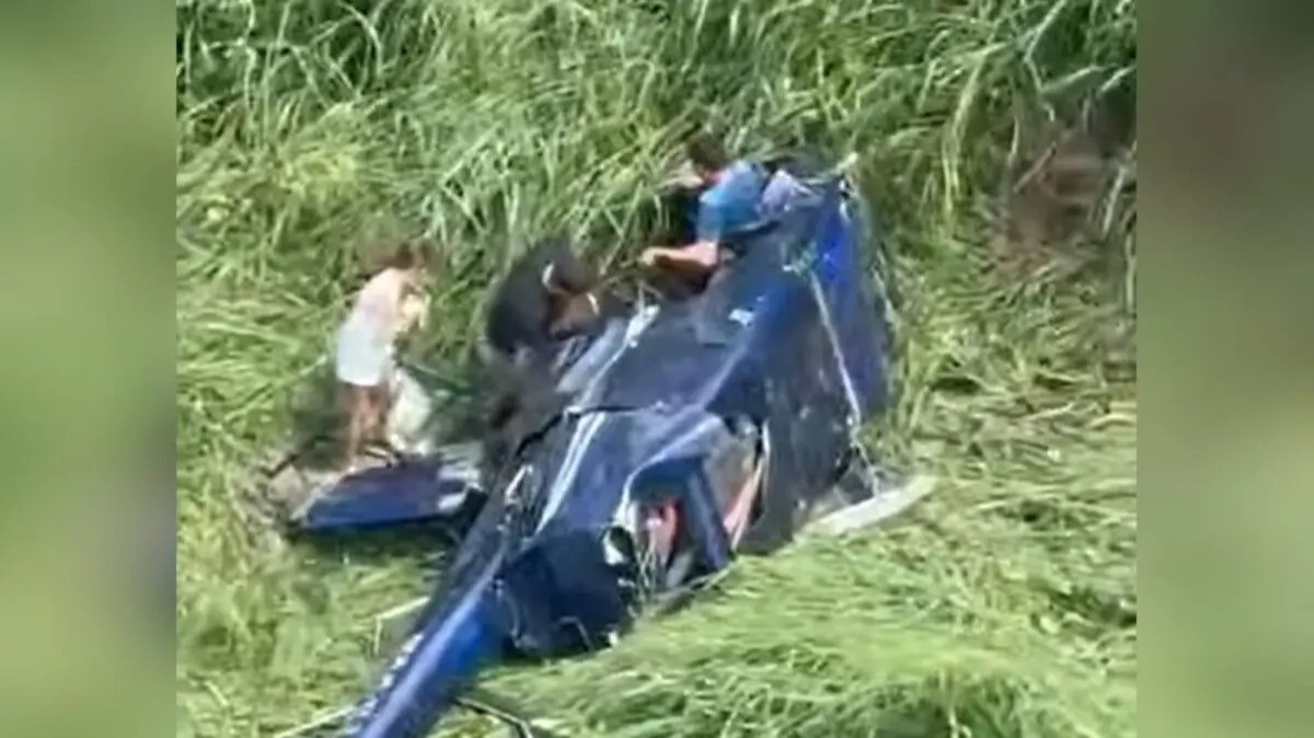 Helicóptero caiu em Campina a poucos metros da decolagem e ocupantes saíram sozinhos, mostram vídeos