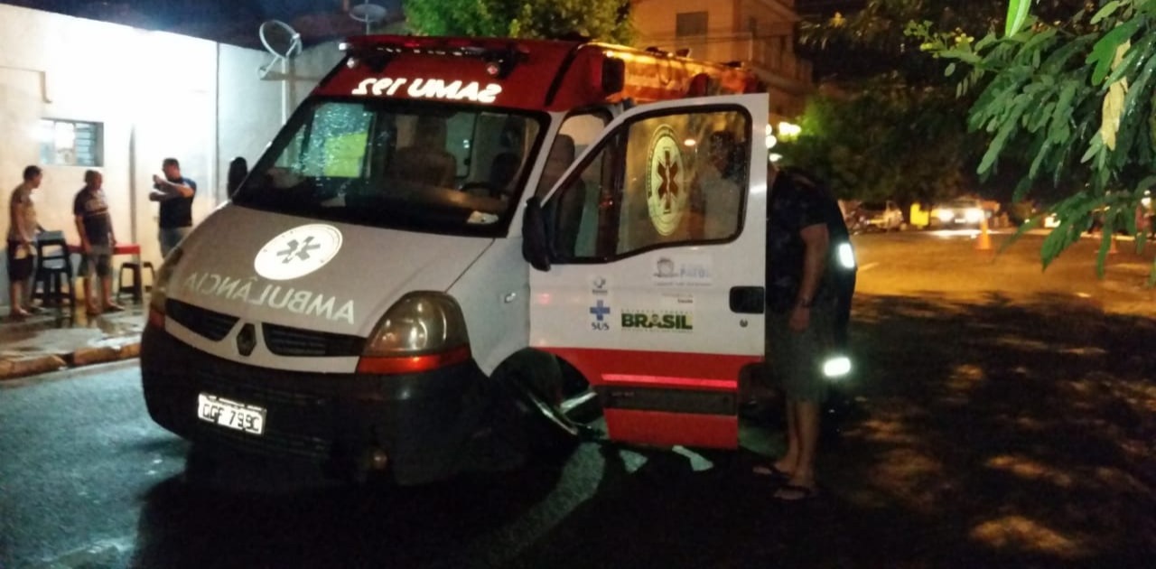 O motorista ao fazer a conversão na Rua do Prado para seguir pela Rua São José, no bairro Santo Antônio, viu a roda cair. Felizmente não havia paciente na viatura de placas QOF – 7990 – Patos.