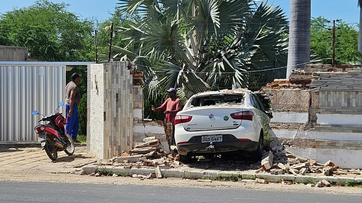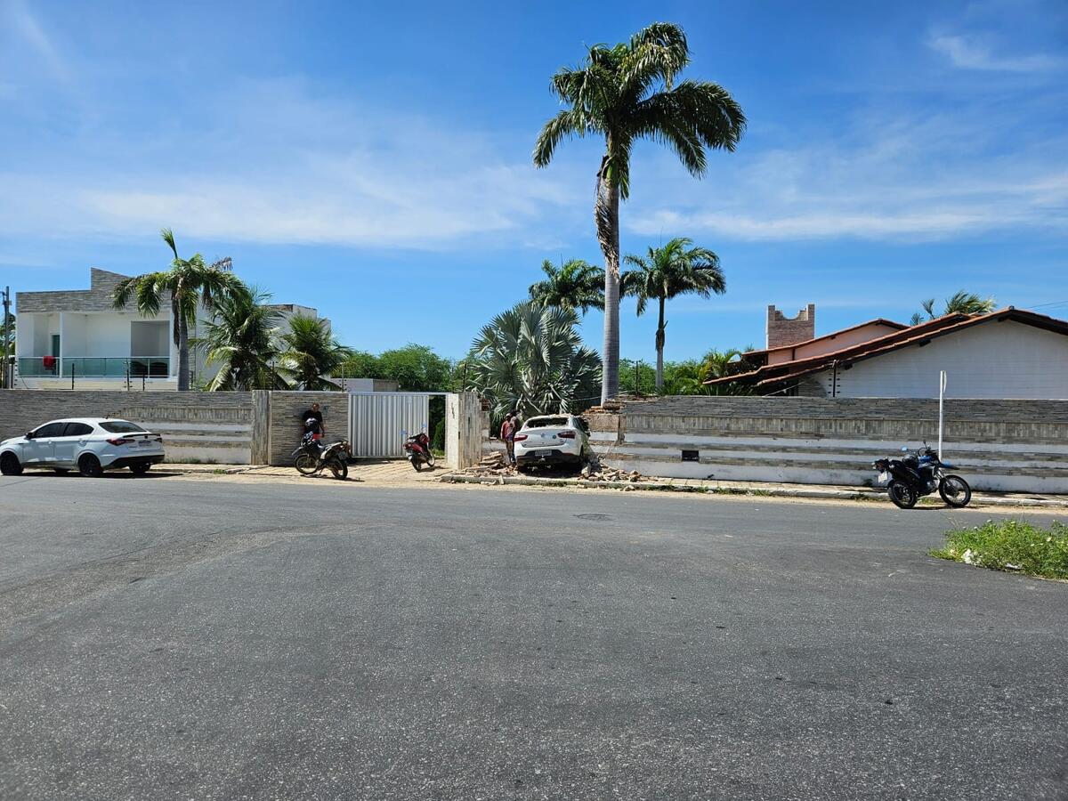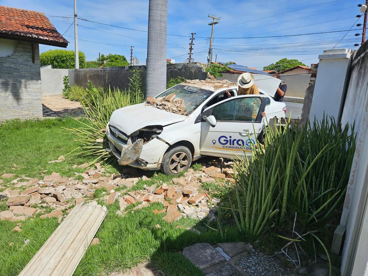 O carro, fora de controle, cruzou a rua e invadiu a residência de Ramiguel Palmeira, destruindo seu veículo e o muro. Por pouco, o sinistro de trânsito não terminou em tragédia.
