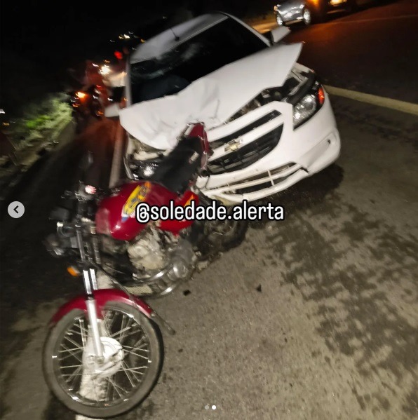 Um grave acidente foi registrado, na noite do domingo (15), no km 204 da BR-230, na localidade da Palestina, nas proximidades da entrada da cidade de Olivedos-PB, no Curimataú da Paraíba. Um carro e uma motocicleta se envolveram em uma colisão traseira na rodovia sentido Campina Grande a Soledade.