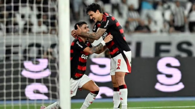 É possível dizer que o primeiro gol do Flamengo aconteceu no momento em o Botafogo tentava desequilibrar a partida. E foi nessa hora que a qualidade individual pesou. Aos 39 minutos, Arrascaeta recebeu de costas, girou sobre a marcação, conduziu e tocou para Pedro já posicionado na entrada da área. O camisa 9 dominou e chutou no canto esquerdo.
