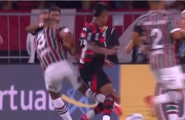 Aos 10 minutos do segundo tempo, BH foi derrubado pelo defensor tricolor na área. Jogadores rubro-negros pediram pênalti, mas árbitro Davi de Oliveira Lacerda não marcou, nem foi chamado pelo VAR para rever o lance. O comentarista de arbitragem PC Oliveira considerou a jogada normal.