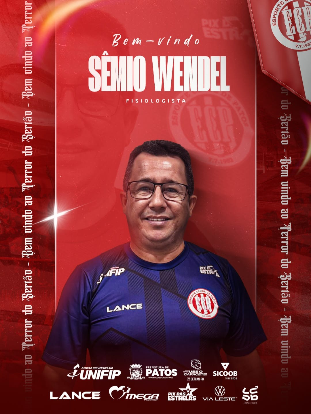 O Esporte Clube de Patos comunica a contratação de Sêmio Wendel como novo fisiologista para a temporada 2026.