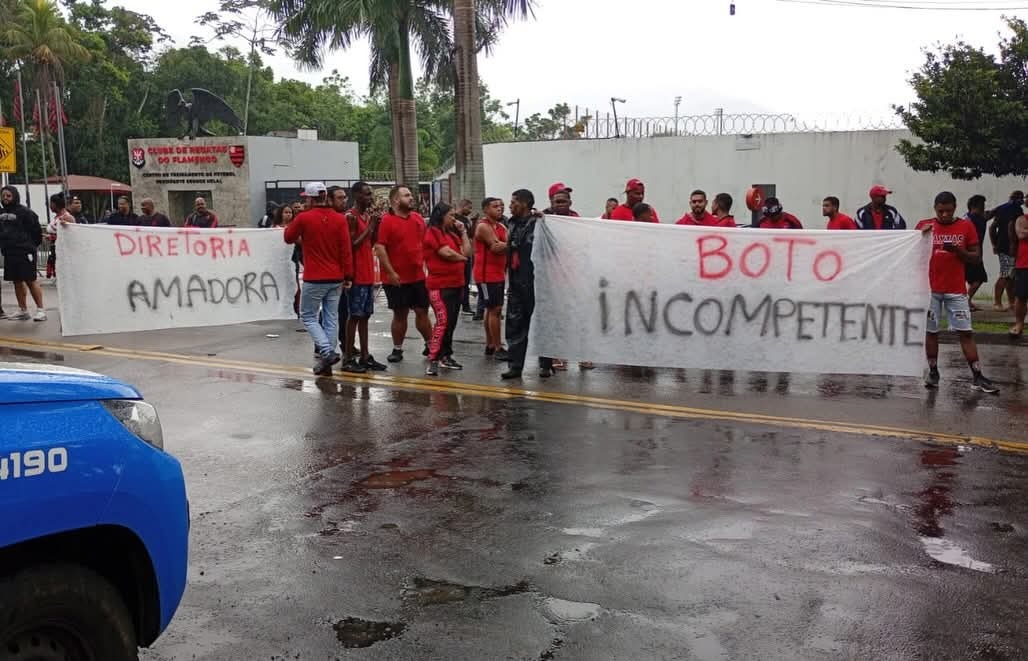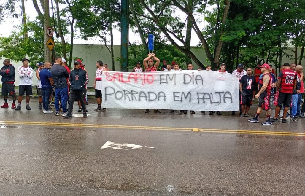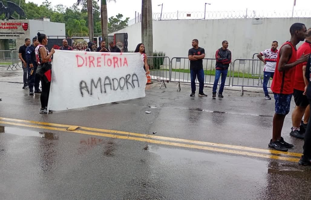 Cerca de 34 horas depois da dolorosa derrota para o Lanús no Maracanã, que culminou no segundo título perdido em menos de dois meses em 2026, o elenco do Flamengo se reapresentou na manhã deste sábado no Ninho do Urubu tentando juntar os cacos para sair da crise. E os jogadores foram recebidos com protestos de torcedores de organizadas na porta do CT.