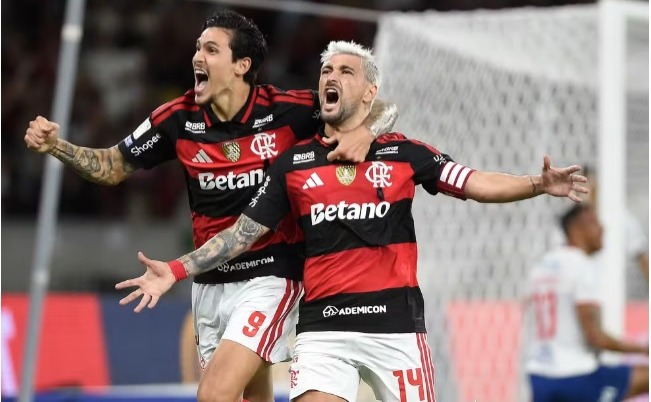 Três minutos depois, Pedro teve uma chance de cabeça, mas só resvalou na bola e não conseguiu colocar direção. O Bahia, que foi mais conservador e assustou apenas em um lance com Erick Pulga no primeiro tempo, voltou para a etapa final com mudanças de jogadores para ficar mais ofensivo. Até teve uma oportunidade com Acevedo e uma bola de longe no travessão, mas na prática acabou dando mais campo para o Flamengo, que criou três chances claras em 10 minutos, todas com Arrascaeta: um chute defendido, outro para fora e uma cabeçada na trave.