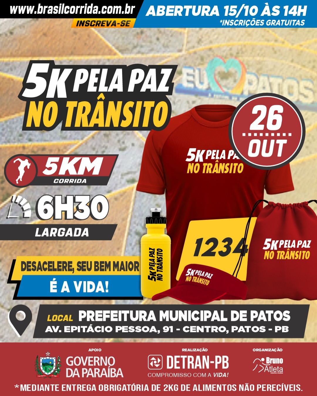 Patos realiza ‘Corrida 5K pela Paz no Trânsito’ no dia 26 de outubro