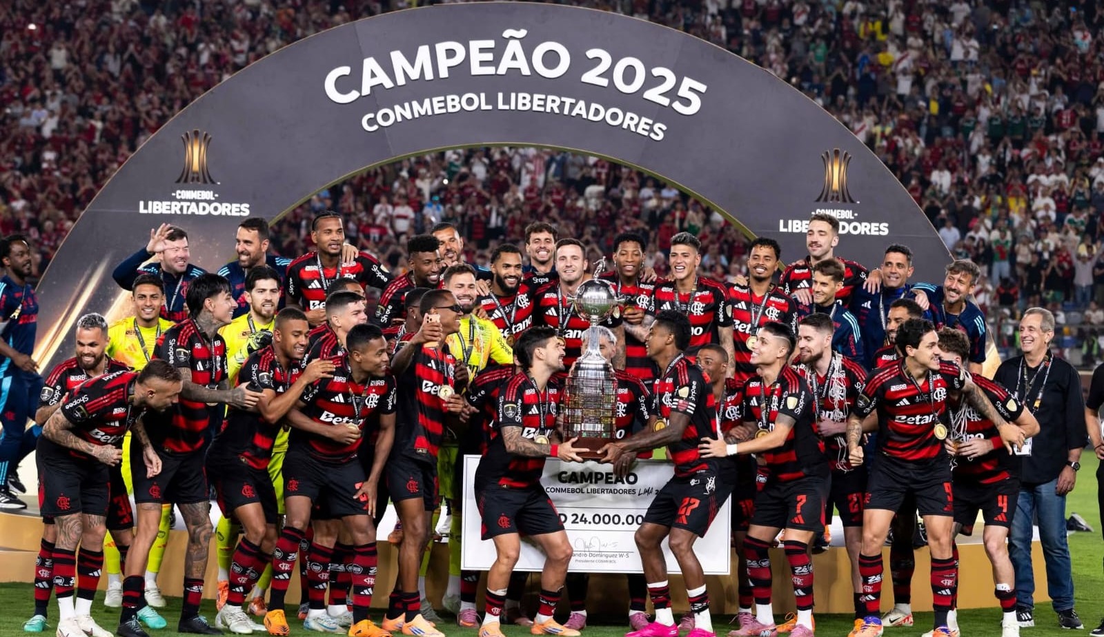 Flamengo recebeu 24 milhões de dólares pelo título da Libertadores — Foto: Reprodução/Conmebol