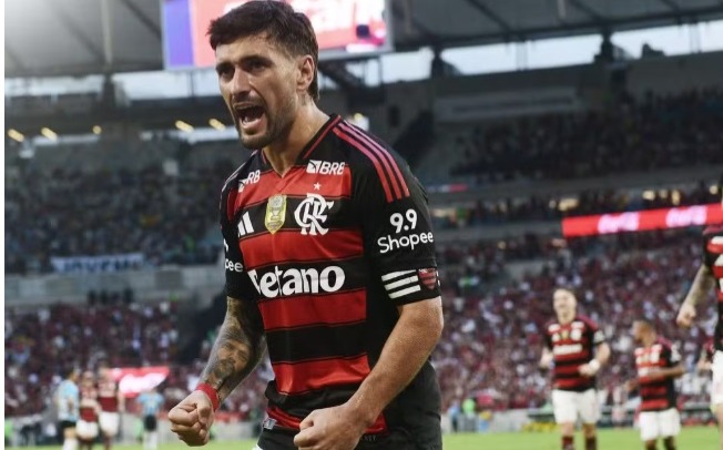Arrascaeta comemora gol do Flamengo sobre o Grêmio Campeonato Brasileiro 2025 — Foto: Alexandre Durão