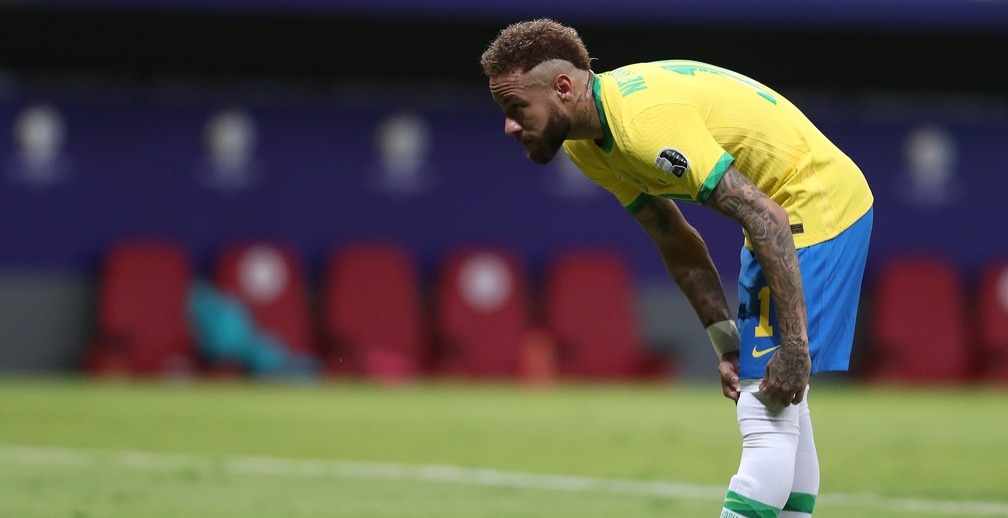 Neymar se prepara para cobrar pênalti em Brasil x Venezuela - Copa América 2021 — Foto: Buda Mendes/Getty Images
