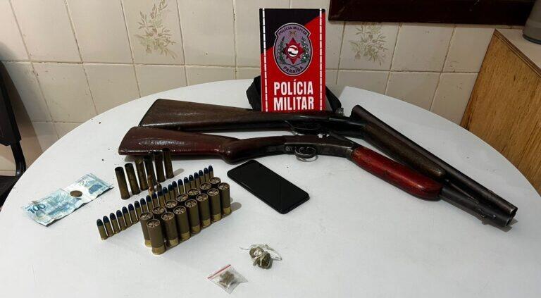 Após ter conhecimento, as guarnições se deslocaram à comunidade e durante diligências os militares conseguiram apreender duas espingardas calibres 12 e 32, 38 munições de pelo menos 3 calibres diferentes, além de duas porções de substância semelhante à maconha.