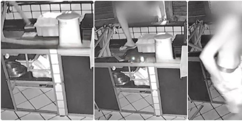 Nas imagens, o suspeito aparece arrombando uma janela para ter acesso ao interior do imóvel. Após entrar, ele vasculha a cozinha, chega a procurar algo embaixo da pia e, em seguida, abre a geladeira, de onde retira algumas garrafas antes de deixar o local.