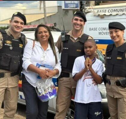 Menino que devolveu celular perdido para Polícia Militar ganha aparelho novo