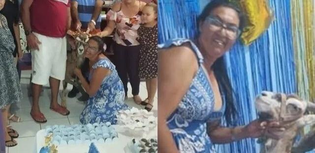 Mulher faz festa de aniversário para bode com direito a bolo e churrasco