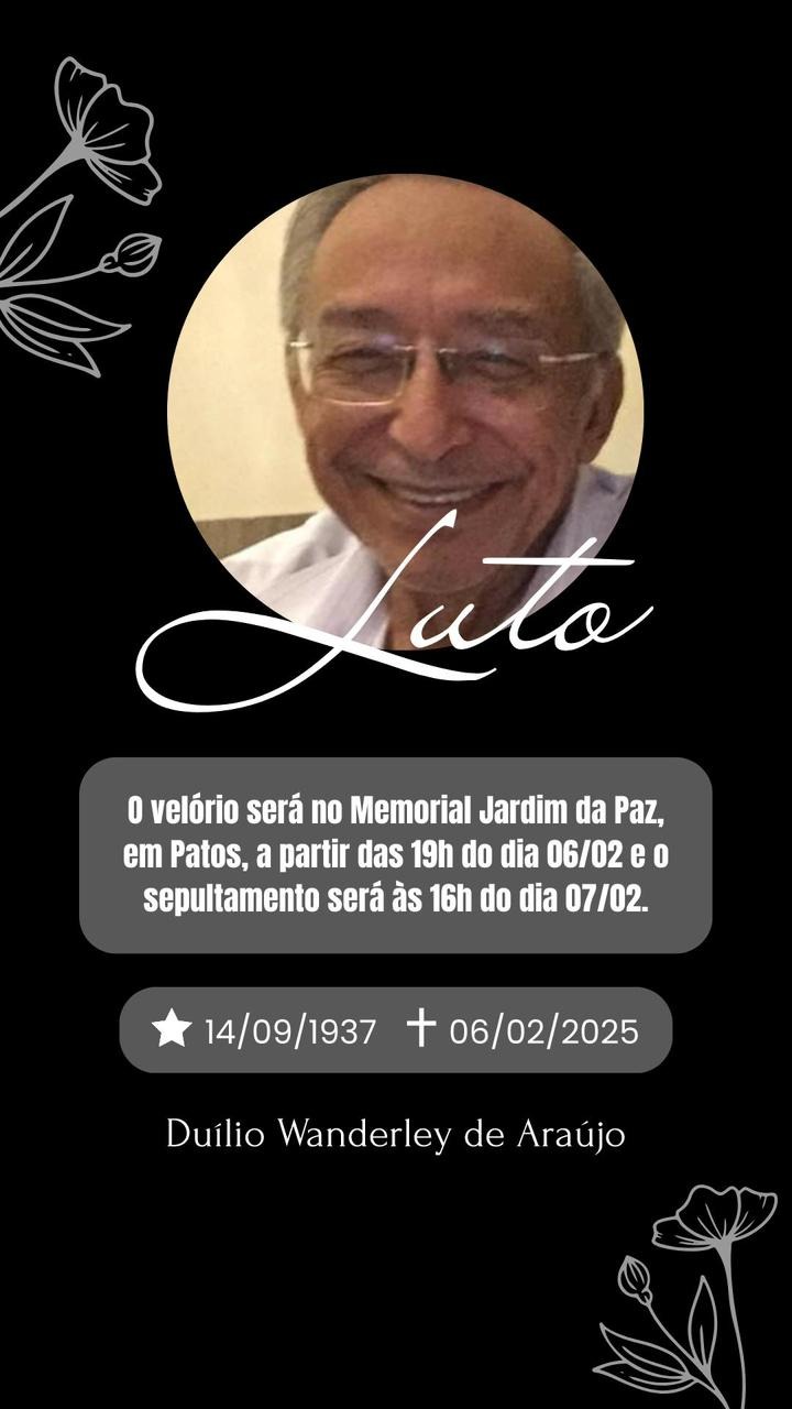 A cidade de Patos se despede de um de seus ilustres filhos, o juiz aposentado Duílio Wanderley de Araújo, que faleceu nesta sexta-feira (06), aos 88 anos de causas naturais.