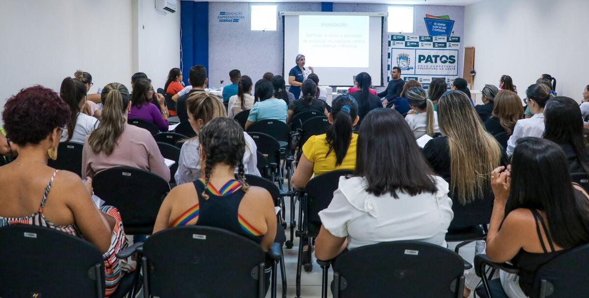 A Prefeitura de Patos, por meio da Secretaria Municipal de Saúde, promoveu nesta sexta-feira, 28 de abril, uma atualização em sala de vacina para os profissionais responsáveis pela imunização no município. O evento ocorreu no auditório secundário do Sebrae e foi ministrado pela técnica Anny Lucena, que destacou a importância de manter-se atualizado frente às frequentes modificações nas vacinas.