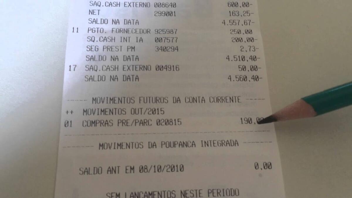 Entre os termos que aparecem nos extratos bancários estão o depósito de dinheiro em espécie no correspondente bancário, depósito em cheque nos caixas eletrônicos e saque de dinheiro em espécie no caixa convencional dentro da agência com cartão da conta.