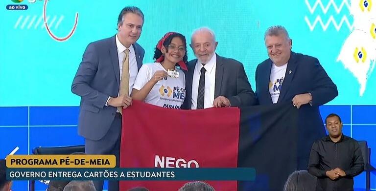 Aluna da Paraíba recebe cartão do Pé-de-Meia das mãos do presidente Lula