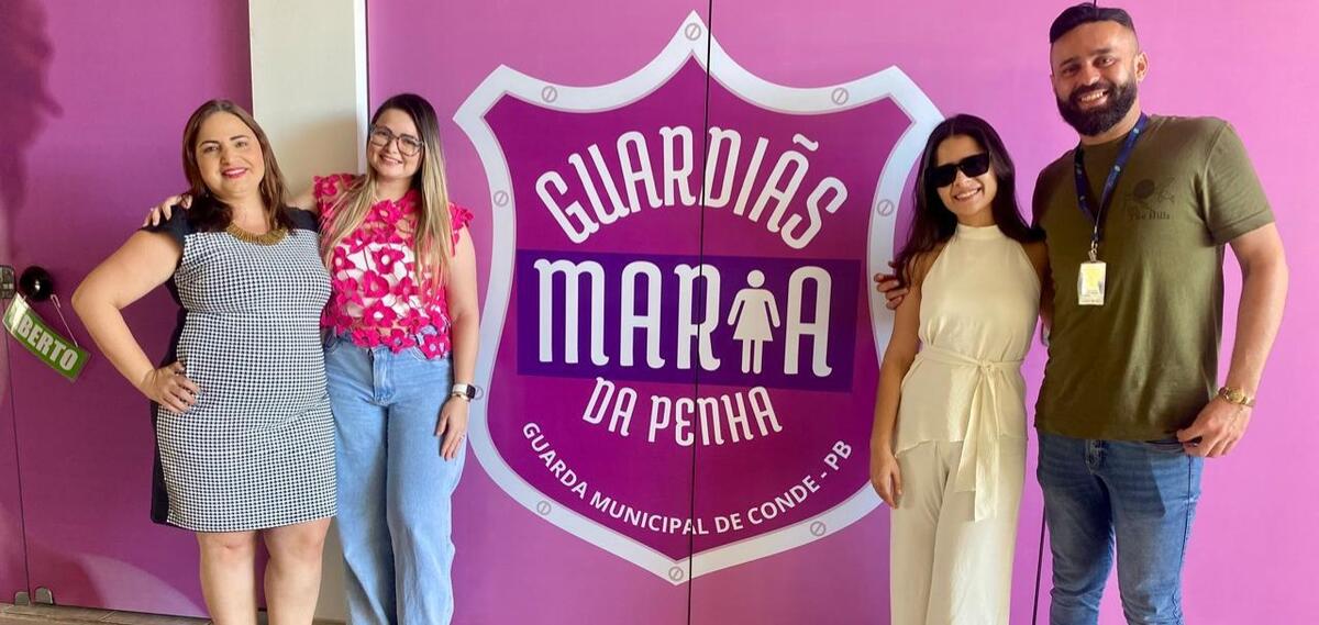 A secretária executiva de Políticas Públicas para a Mulher e Diversidade Humana de Patos, Jéssica Alexandre, e o comandante da Guarda Municipal André Fernandes, estiveram na cidade do Conde para conhecer o trabalho realizado pelo Programa Guardiãs Maria da Penha, pioneiro no Estado.