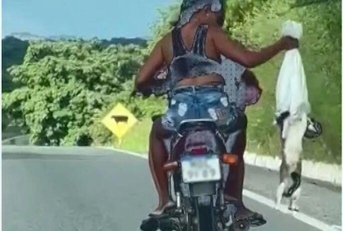 Nas imagens, é possível ver os gatos sendo transportados em uma sacola de plástico enquanto a moto está em movimento, e os animais são jogados impiedosamente no chão.