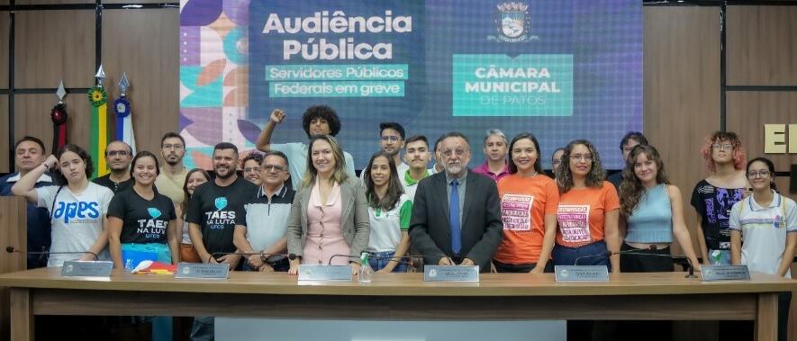 A Câmara Municipal de Patos promoveu na noite dessa segunda-feira, dia 29 de abril, uma Audiência Pública para debater a greve dos professores e demais servidores técnico-administrativos do IFPB e UFCG, câmpus de Patos, que aderiram a paralisação nacional por reajuste salarial.