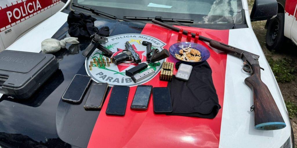 A Polícia Militar apreendeu, nessa quinta-feira (9), quatro armas de fogo, drogas, balança de precisão e dinheiro que teria sido obtido das atividades do tráfico de drogas, durante operação realizada pelos policiais da 3ª Companhia do 14º Batalhão, na cidade de Pombal.