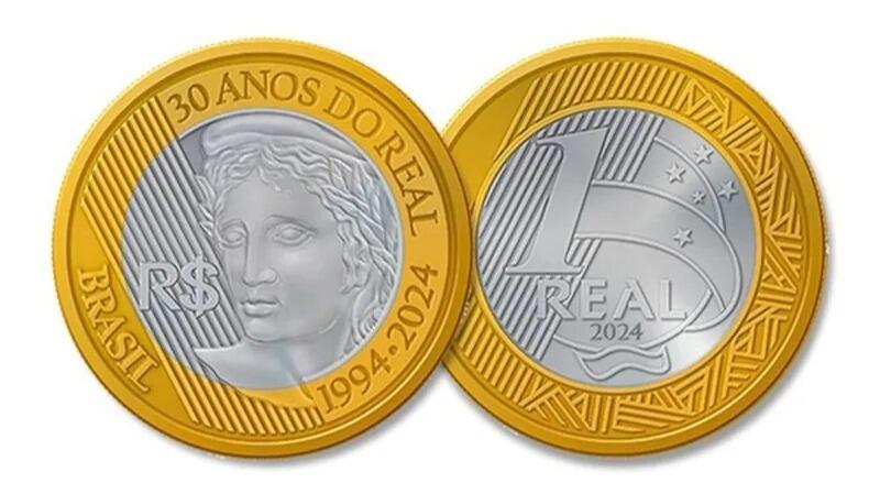 O Banco Central (BC) lançou a moeda de 1 real em comemoração ao trigésimo aniversário do Real. Ao todo, 45 milhões de moedas alusivas à data serão distribuídas por meio da rede bancária.