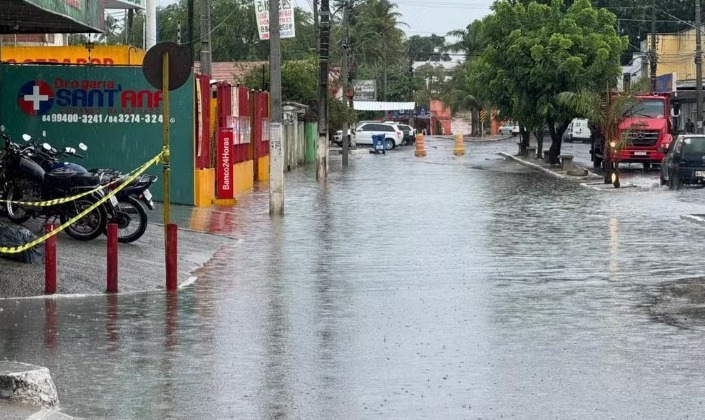 Enxurradas, alagamentos, comércios invadidos: chuva causa transtornos no RN