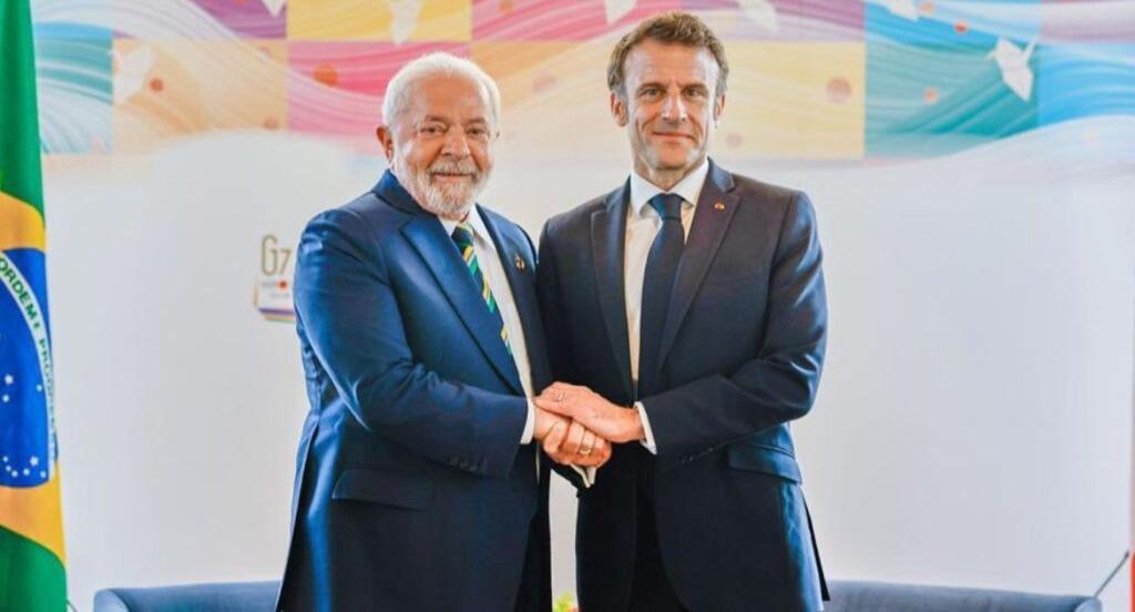 “Reencontro com o presidente da França, Emmanuel Macron, no G7. Falamos sobre a preservação da Amazônia e caminhos para a construção da paz na Ucrânia. Estamos retomando a amizade e a parceria entre nossos países, podemos fazer muitas coisas juntos”, escreveu Lula na postagem que inclui uma foto dos dois chefes de governo se cumprimentando.