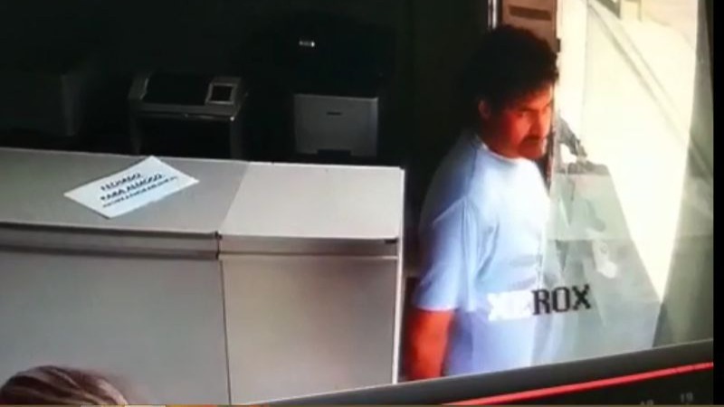 Já em outro flagrante, o ladrão usa a mesma roupa. Não se sabe se o furto teria sido cometido no mesmo dia.