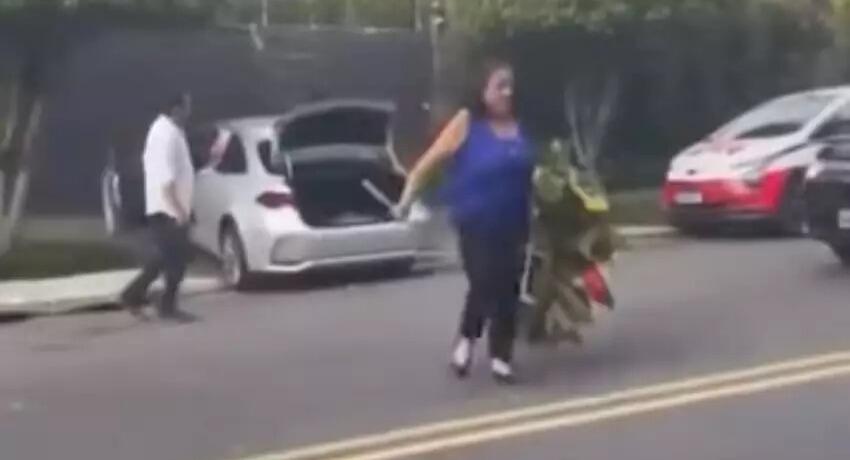 Vídeos que circulam nas redes sociais mostram que a pensionista militar do Exército Maria Cristina de Araújo Rocha, de 76 anos, chegou ao local na tarde desta quinta-feira e tentou deixar a coroa de flores em frente à casa do presidente, que estava no imóvel.