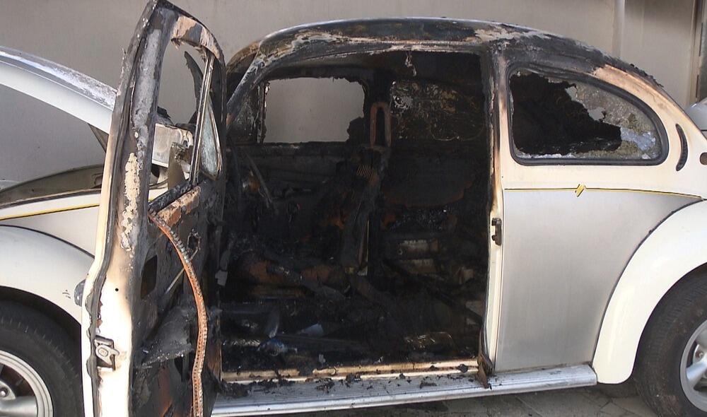 Segundo a vítima, dentro da garagem o suspeito encontrou um Fusca modelo 1974 com a chave na ignição. Ele ainda teria tentado arrombar o portão para sair com o carro, mas, irritado com a ação frustrada, o criminoso ateou fogo no Fusca, que era de coleção.
