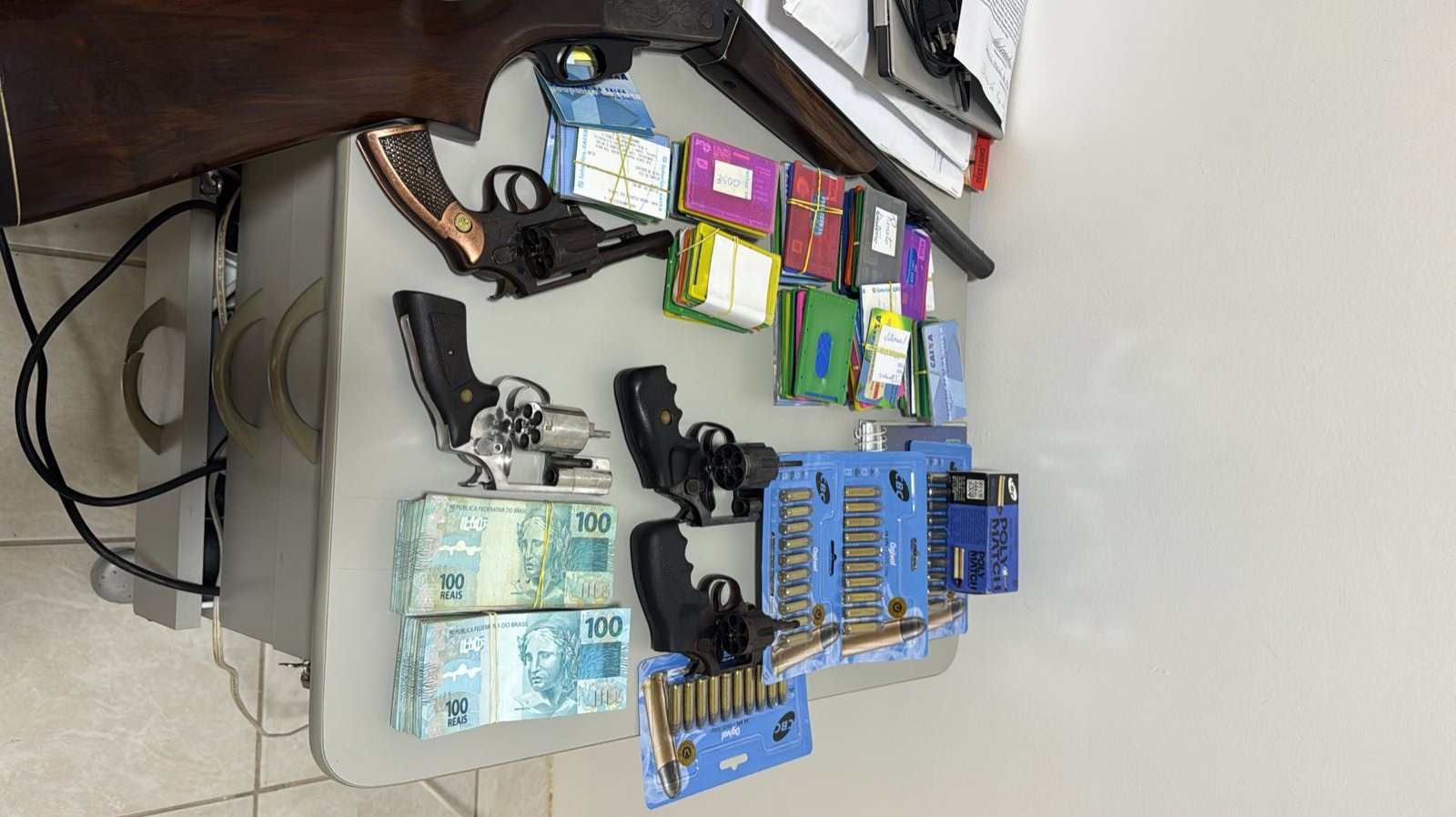 No entanto, no andamento das ações, o suspeito não foi preso diretamente pelas licitações irregulares, mas sim porque foram localizadas cinco armas de fogo com ele e, por isso, acabou sendo preso por posse ilegal de arma de fogo.