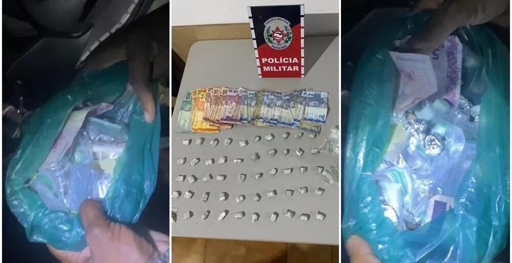 Após a abordagem, os policiais realizaram revista pessoal nos indivíduos e verificaram o conteúdo da sacola. Dentro dela, foram encontradas 50 porções de uma substância semelhante à maconha, além de R$ 387 em dinheiro e algumas embalagens plásticas. Os suspeitos foram identificados como um jovem de 20 anos e um menor de 16 anos.